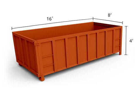 16 Yard Dumpster $320 Contact UsCALL US TODAY Dimensions 15’L, 6’W, 4’H, Rental Time Up to 3 Days Included Tonnage 4000 lbs Additional Days/Extra Weight: Additional Days: $20/day Extra Weight: $50/ton